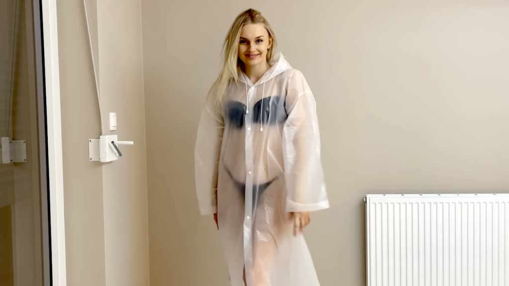 【試着】透けている部分がめっちゃエロい!?wクリアホワイトレインコートを意味深に試す♡