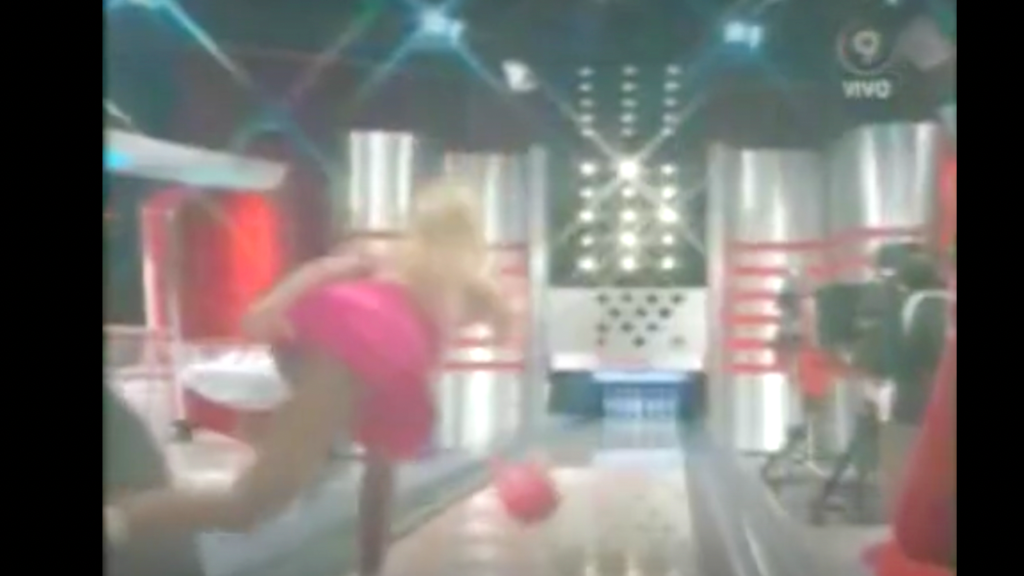 海外TVでお色気、セクシーシーンありのミニスカボーリング。