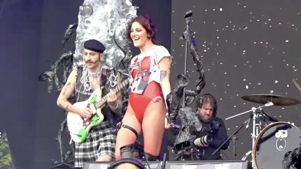 まさにロックな感じのダメージ入った網タイツにハイレグ仕様。鮮やかな色に惹きつけられるw